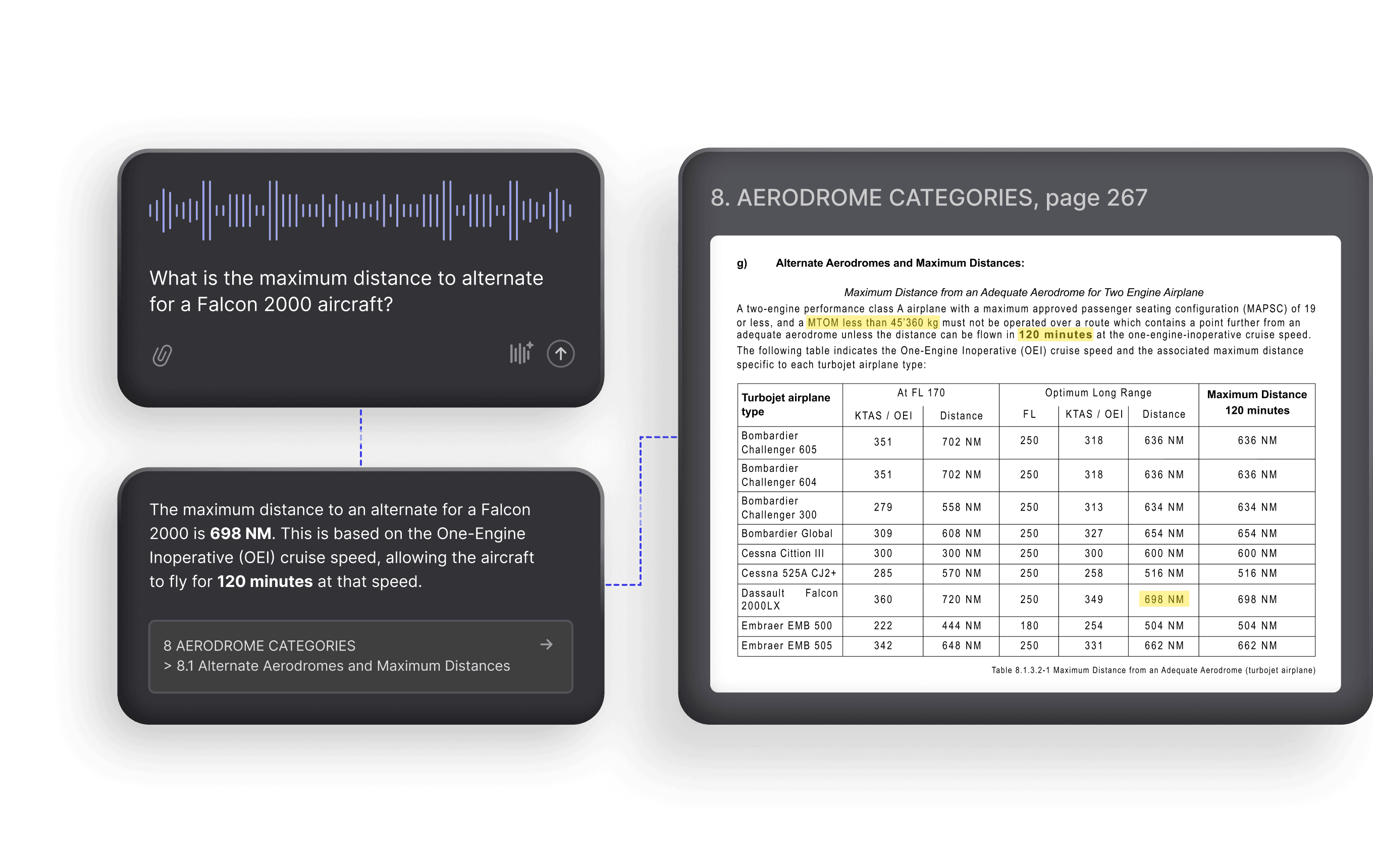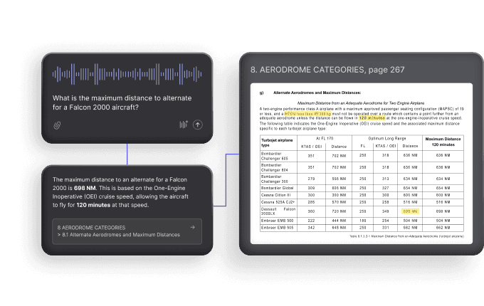 You bring the data, we take care of the rest. From manuals, maintenance records, flight data and external data APIs like weather and NOTAMS, we transform your raw information into AI-ready intelligence.
