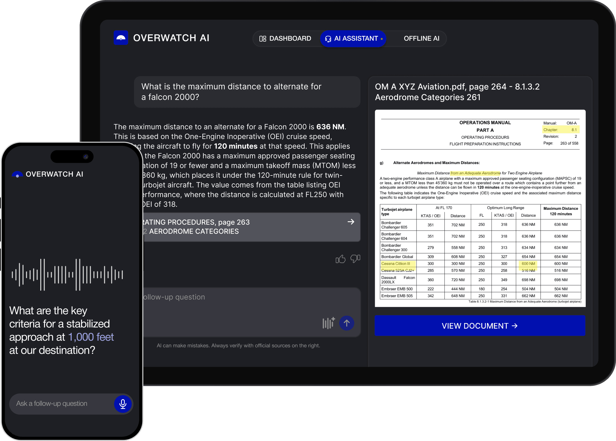 Manuals, aircraft records, flight details and external data all unified in one place, providing unprecedented situational awareness. No more fragmented data or blind spots.